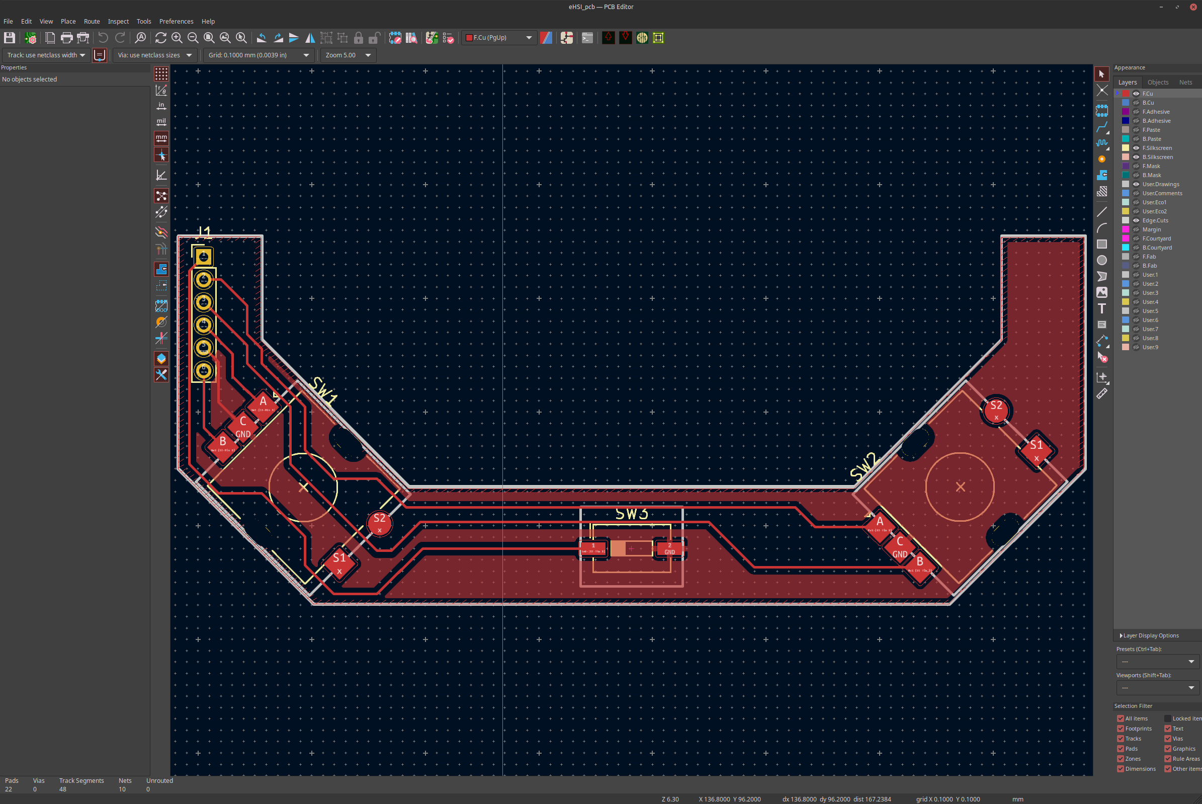 Ich habe bereits mit dem Designen der Platine begonnen, bin mir aber nicht sicher, ob ich sie produzieren lasse oder sie gleich selbst mit der CNC Fräse selbst mache.