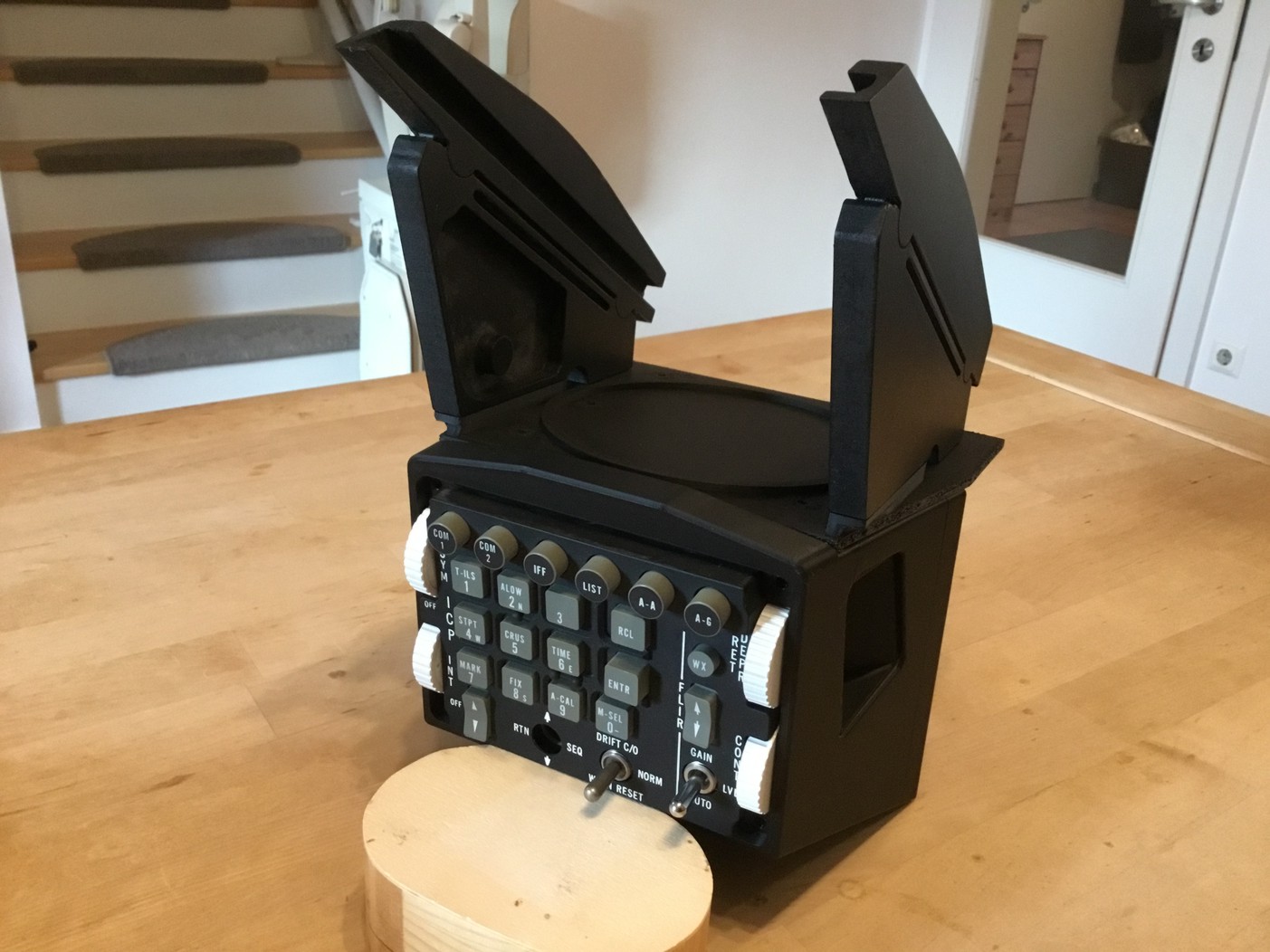 At the time when I built my CenterConsole there were not a lot of infos about the F-16 available, so the HUD block, where the ICP mounts to, was missing the chamfer on the front to have a better look at the instrument panel..